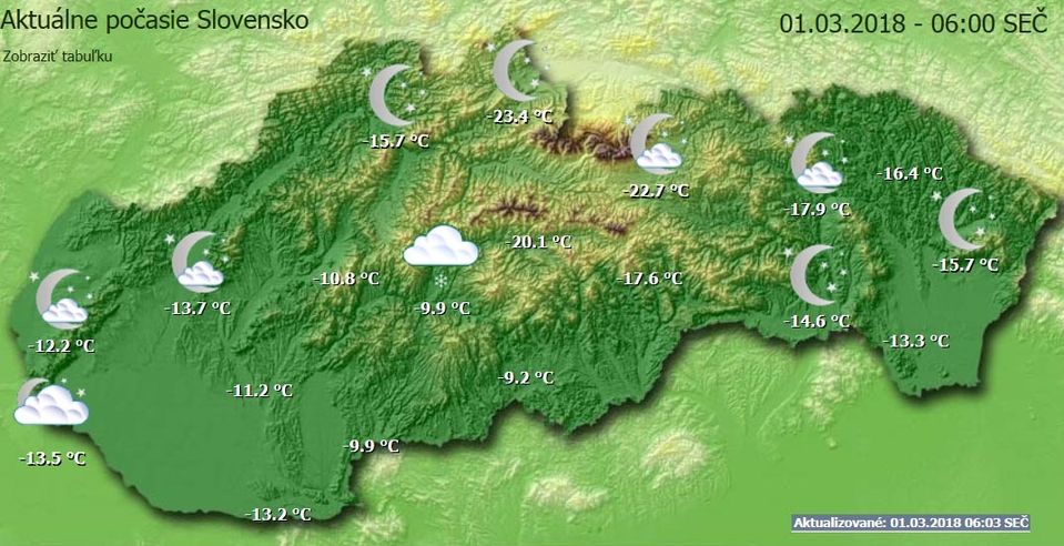 Pozrite si, do akých teplôt sa dnes zobudilo Slovensko.