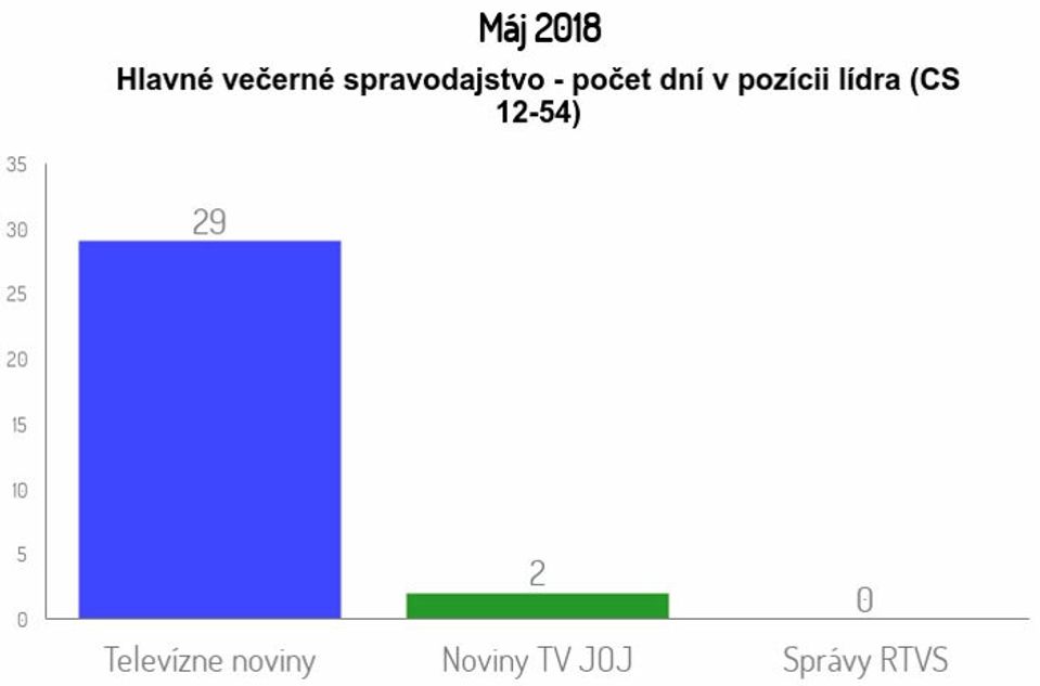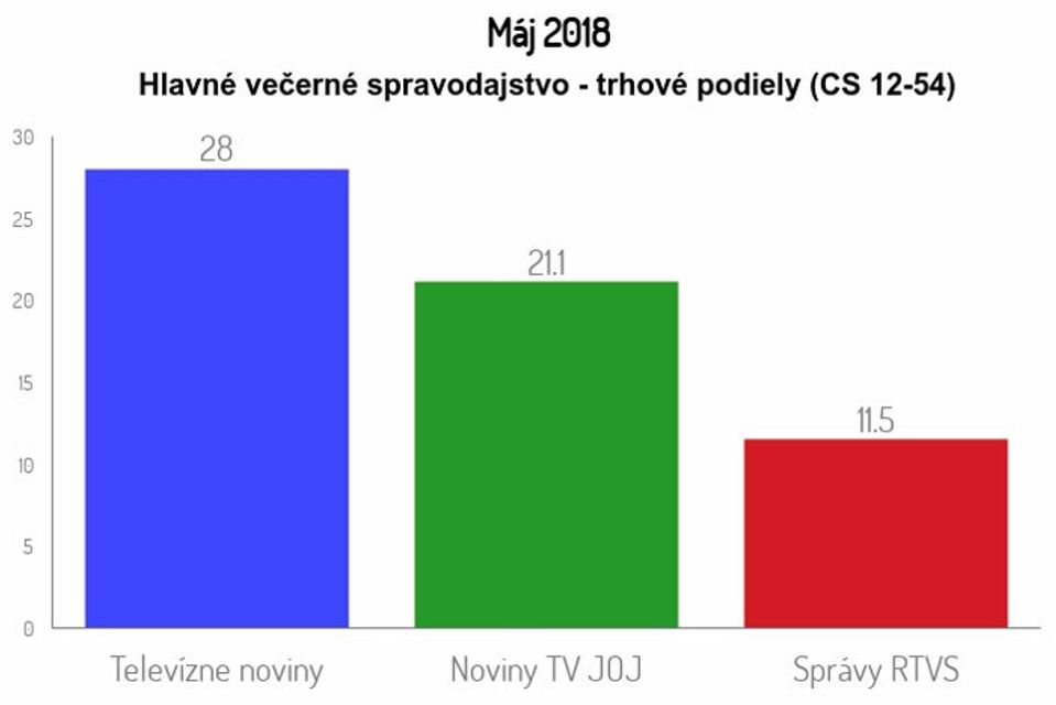 Výborné výsledky sledovanosti zaznamenala v máji 2018 aj hlavná spravodajská relácia Televízne noviny. V obchodnej cieľovej skupine 12-54 dosiahla výborný priemerný rating 6,8 % a trhový podiel 28,0 %.