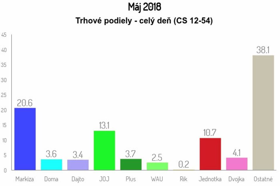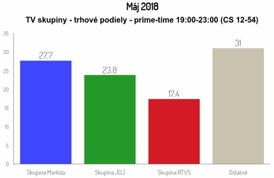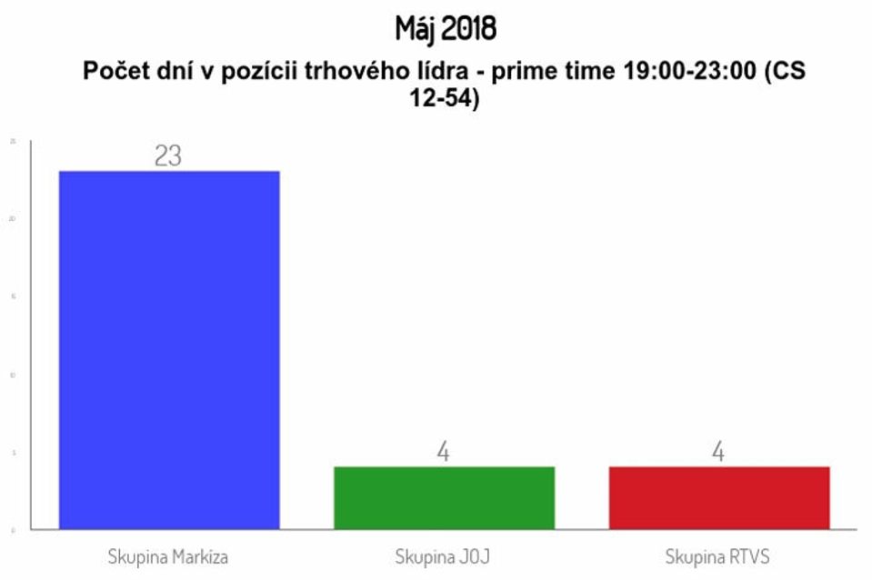 Skupina Markíza si so stanicami Markíza, Doma a Dajto v uplynulom máji 2018 aj napriek silnej konkurencii hokejových majstrovstiev sveta udržala stabilnú pozíciu jednoznačného celodenného lídra na slovenskom televíznom trhu. V obchodnej cieľovej skupine 12-54 dosiahla výborný priemerný celodenný trhový podiel 27,5 % a konkurenčnú skupinu Joj (19,5 %) tak predstihla s rozdielom až 8,0 percentných bodov. Jednotkou na trhu bola skupina Markíza v 24 z 31 májových dní.