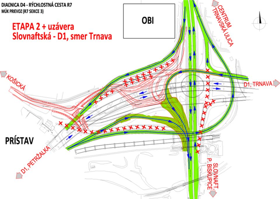 Pre urýchlenie prestavby mimoúrovňovej bratislavskej križovatky Prievoz pod Prístavným mostom, ktorá je súčasťou projektu výstavby diaľnice D4 a rýchlostnej cesty R7, je naplánovaná uzávera výjazdu od Slovnaftskej ulice na diaľnicu D1 smer Trnava.