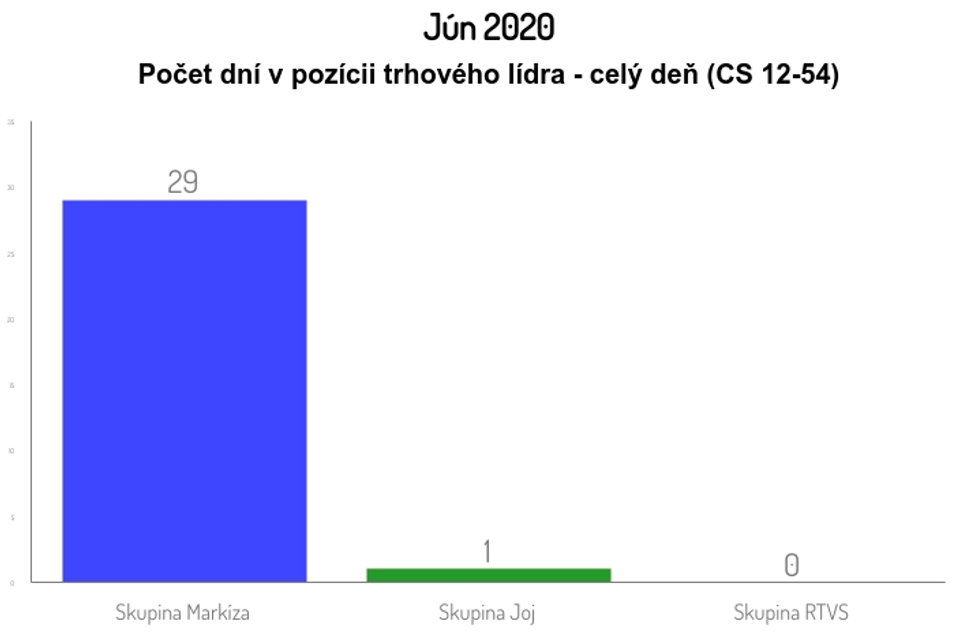 Skupina Markíza bola v júni 2020 jednotkou na trhu aj v prípade divákov starších ako 12 rokov s priemerným celodenným trhovým podielom 23,5 % a odstupom 3,1 percentného bodu od konkurenčnej skupiny Joj (20,4 %). Trhovým lídrom bola v 28 z 30 dní uplynulého mesiaca. Prvenstvo jej patrilo taktiež v prime-time 19:00-23:00 s dosiahnutým priemerným podielom na trhu 26,5 % a náskokom 2,4 % percentného bodu pred skupinou Joj (24,1 %).