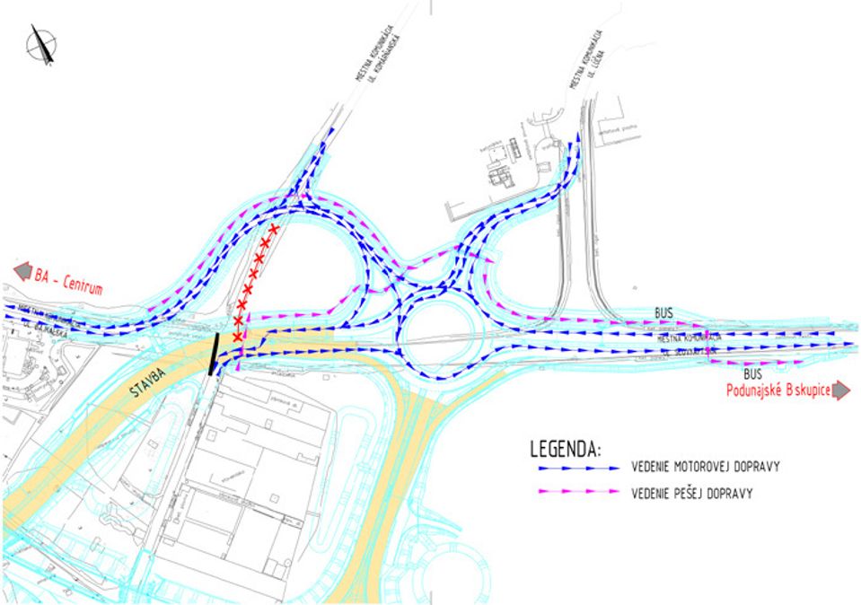 Obchádzkové trasy pôjdu cez Most Apollo a po Gagarinovej ulici. Dopravný podnik sa dohodol so zhotoviteľom, že cez most a na Dolnozemskej ulici vytvoria nový pruh pre autobusy MHD.