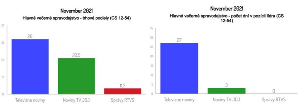 Hlavná spravodajská relácia TV Markíza Televízne noviny dosiahla v novembri 2021 vynikajúci úspech, keď v obchodne podstatnej cieľovej skupine 12-54 zvíťazila nad konkurenciou až v 27 z 30 dní uplynulého mesiaca.