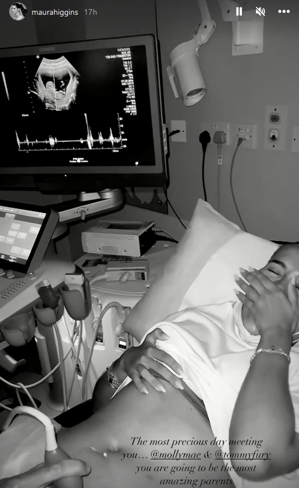 Ich kamarátka a kolegyňa z reality šou Maura Higgins zverejnila aj fotky a videá z Mollynho ultrazvuku, kde boli vidieť prvé zábery bábätka. Reakcie boli úžasné a fanúšikovia boli za dvojicu šťastím bez seba. Mnohí o tom už špekulovali, pretože Molly zmenila štýl obliekania a aj bolo vidieť, že sa jej mení postava.
