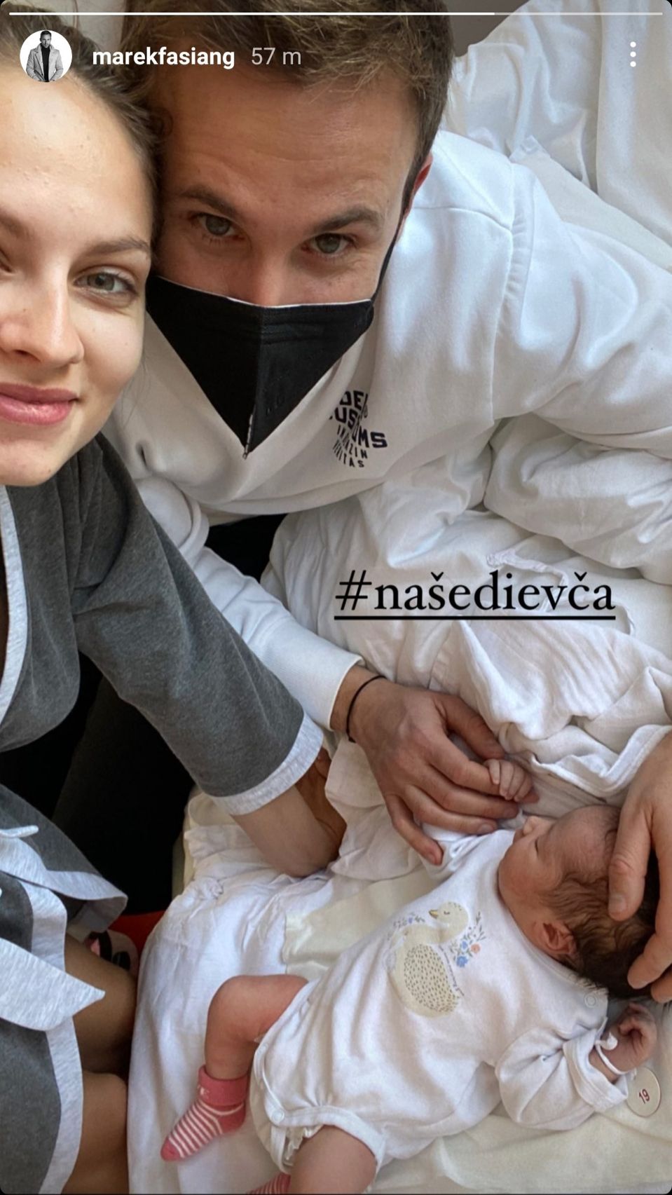 Ešte v ten deň sa so svojimi fanúšikmi podelil o ďalšiu spoločnú fotku, na ktorej je už aj on, aj čerstvá mamička.