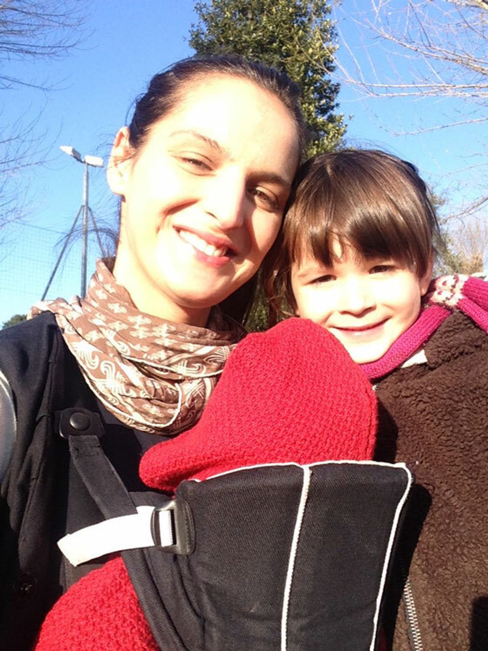 Spolu s dcérami Matildou a Yolanou cestujú, väčšinou ešte pred vystúpením nakŕmi ratolesti a beží na pódium.