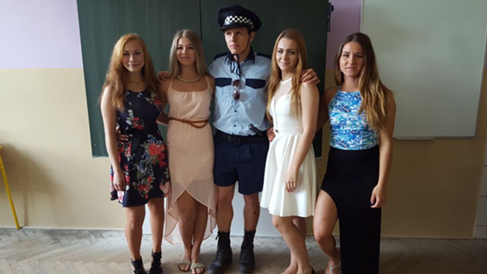 Michal Kubovčík, ktorého poznáte z Kredencu, ale aj ako policajta Sojku zo seriálu Horná Dolná dohliadal na záver školského roka a rozdával vysvedčenia. Žiaci ôsmeho a deviateho ročníka tak mali o zábavu postarané! A triedne učiteľky si aspoň na chvíľu oddýchli...