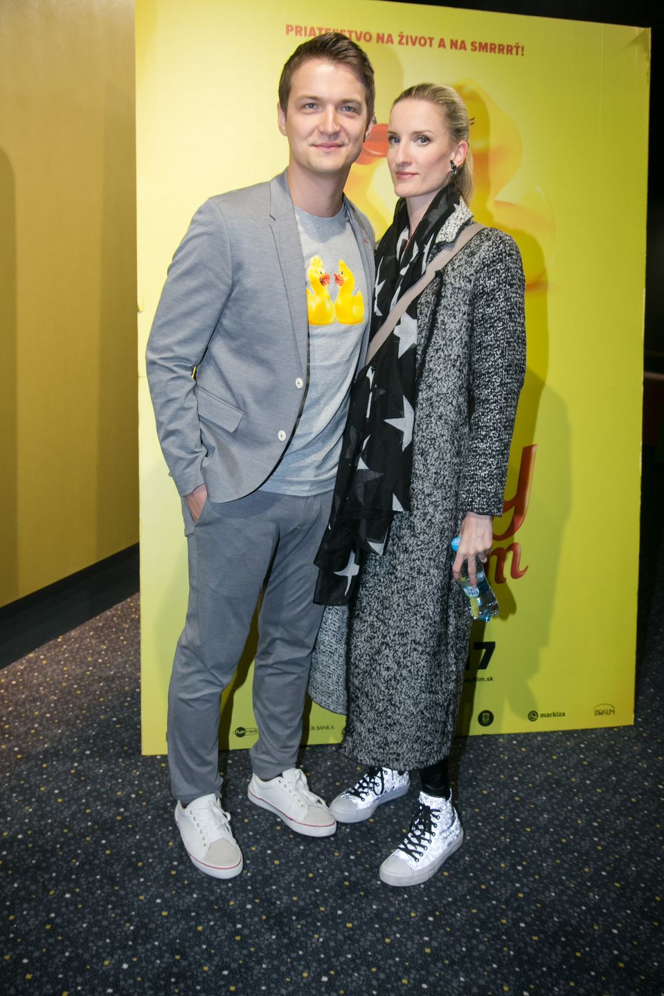 Snúbenci Adela Banášová s Viktorom Vinczem sa zladila do sivej farby.