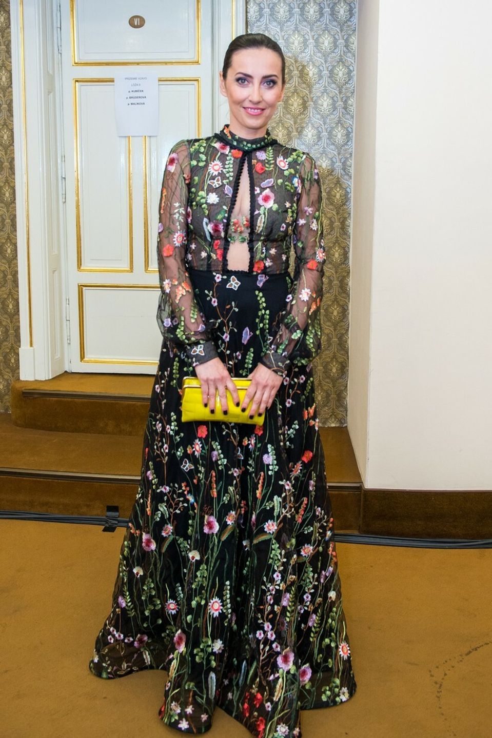 K outfitu zvolila žltú kabelku a decentný účes. Jej najkrajším doplnkom bol úsmev, ktorý na jej tvári vždy radi vidíme.