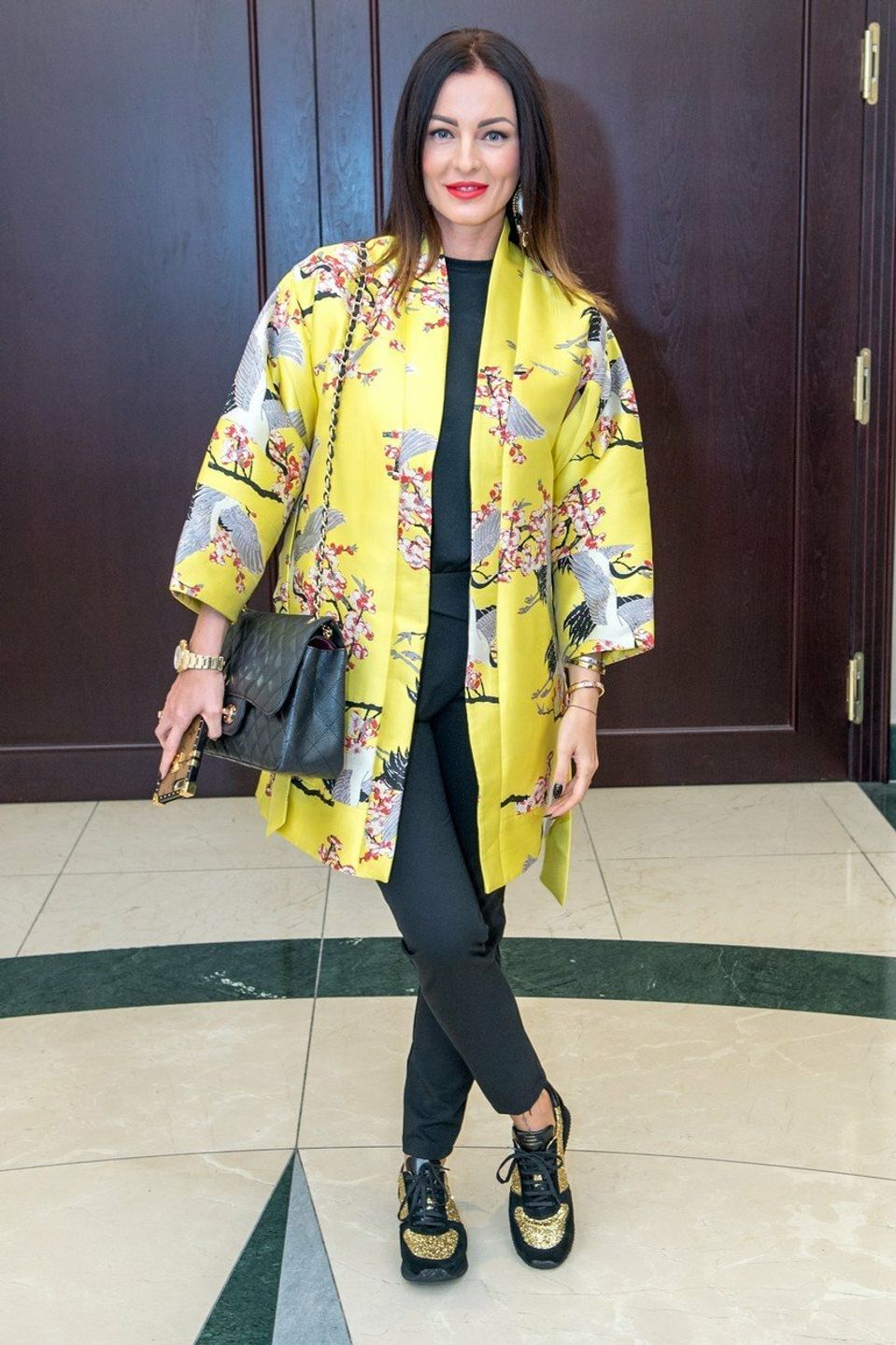 Kristína sa nenechala zahanbiť. Na každej spoločenskej udalosti patrí medzi najluxusnejšie oblečené ženy. Tentoraz stavila na kabelku Chanel, luxusné hodinky Rolex a jej mobilný telefón zdobí kryt značky Louis Vuitton. K outfitu si obula topánky z vlastnej kolekcie.
