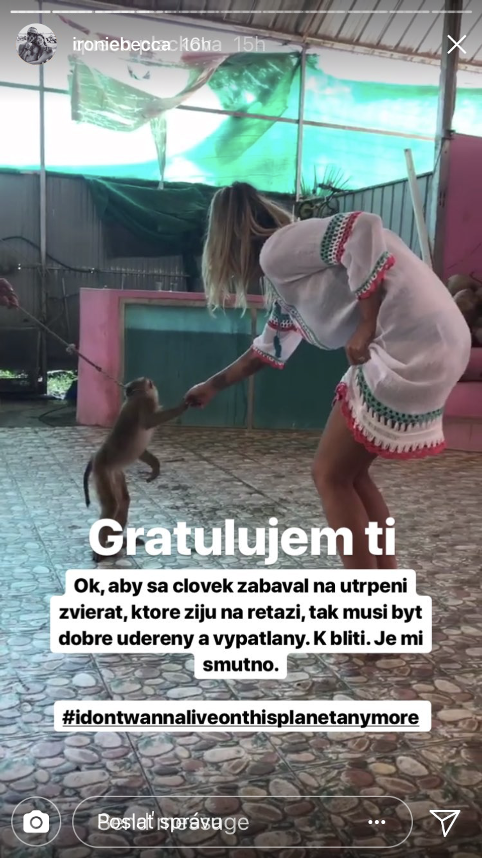 Ak ste medzi tými takmer 400-tisícmi ľudí, ktorí sledujú na Instagrame Zuzanu Strausz Plačkovú, určite ste zachytili jej reakcie na kritiku, ktorá sa na ňu spustila. Spolu s manželom Reném sa na dovolenke v Thajsku najskôr previezli na slonoch a potom si pozreli vystúpenie opíc, ktoré na reťaziach cvičili a zabávali turistov.