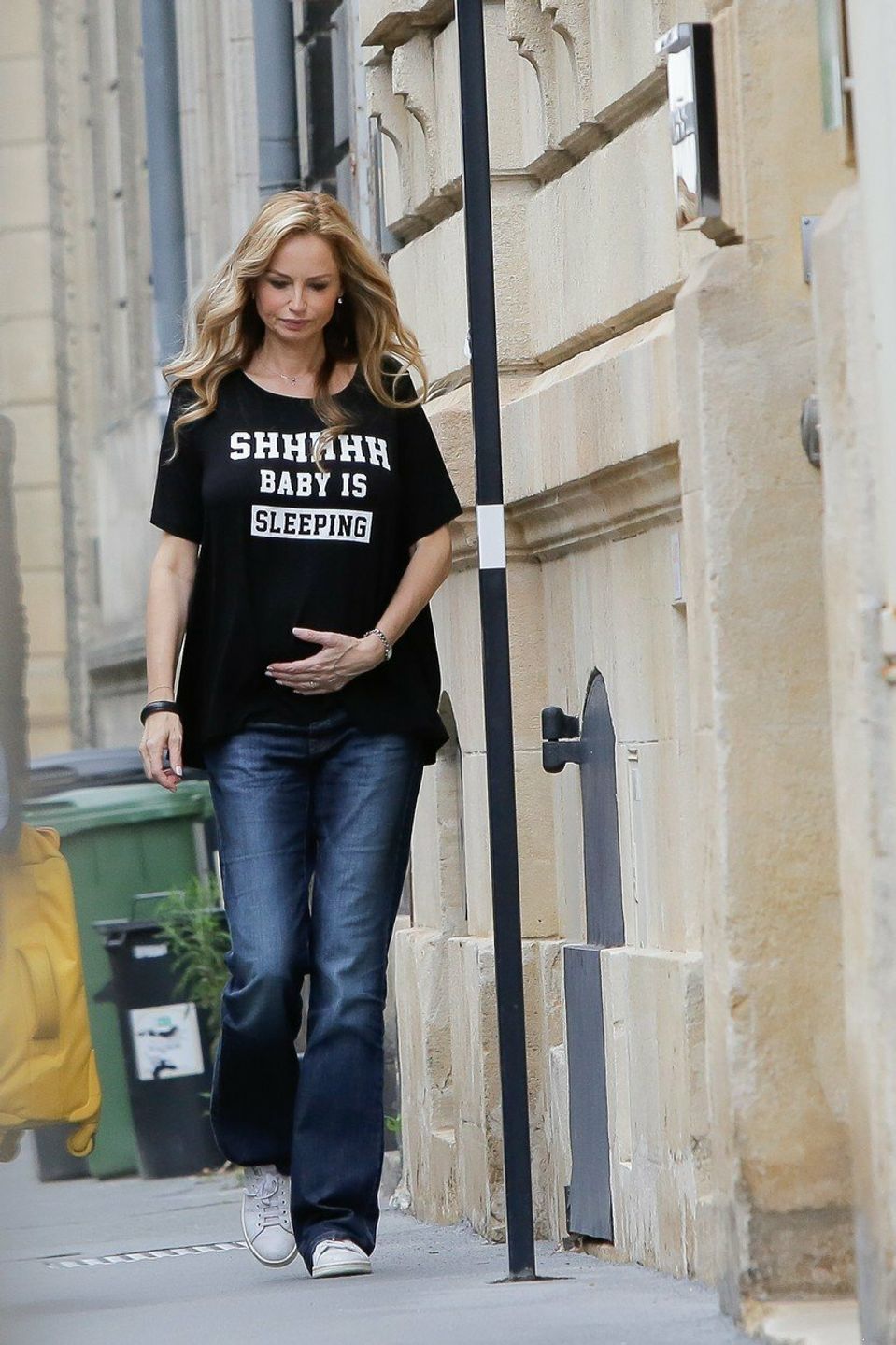 Slovenskú topmodelku odfotili paparazzi v uliciach francúzskeho mesta Bordeaux. Vo vysokom štádiu tehotenstva uprednostňuje voľnejšie oblečenie, ktoré je určite pohodlnejšie. Pozornosť pútal aj nápis na tričku Pssst, bábätko spí. Takmer po celý čas sa držala za bruško.