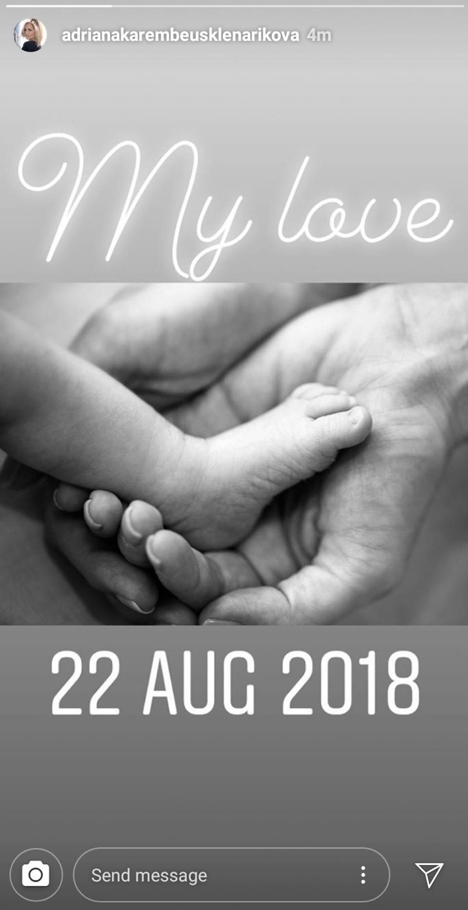 Adriana Sklenaříková priviedla na svet dcérku 17. augusta. Dievčatko, ktorej dali meno Nina, vážilo po narodení 3285 gramov a meralo 54 centimetrov.
