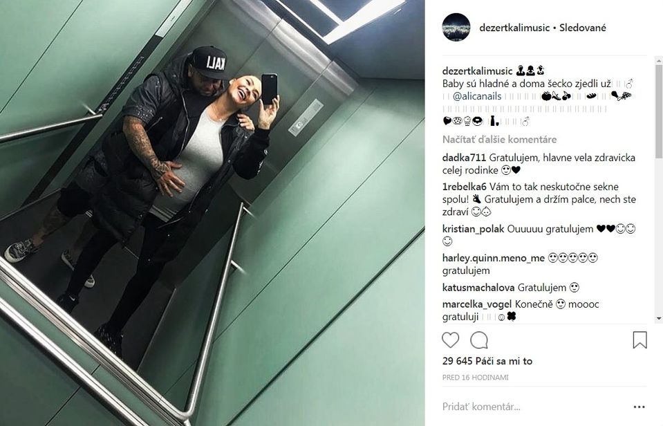 Na Instagrame sa tentoraz s fanúšikmi podelil o fotku, na ktorej Alicu drží za bruško. V popise prezradil, že sa im narodí dievčatko. „Baby sú hladné a doma šecko zjedli už,“ napísal vtipne. Fotka pravdepodobne vznikla smerom na nákup.