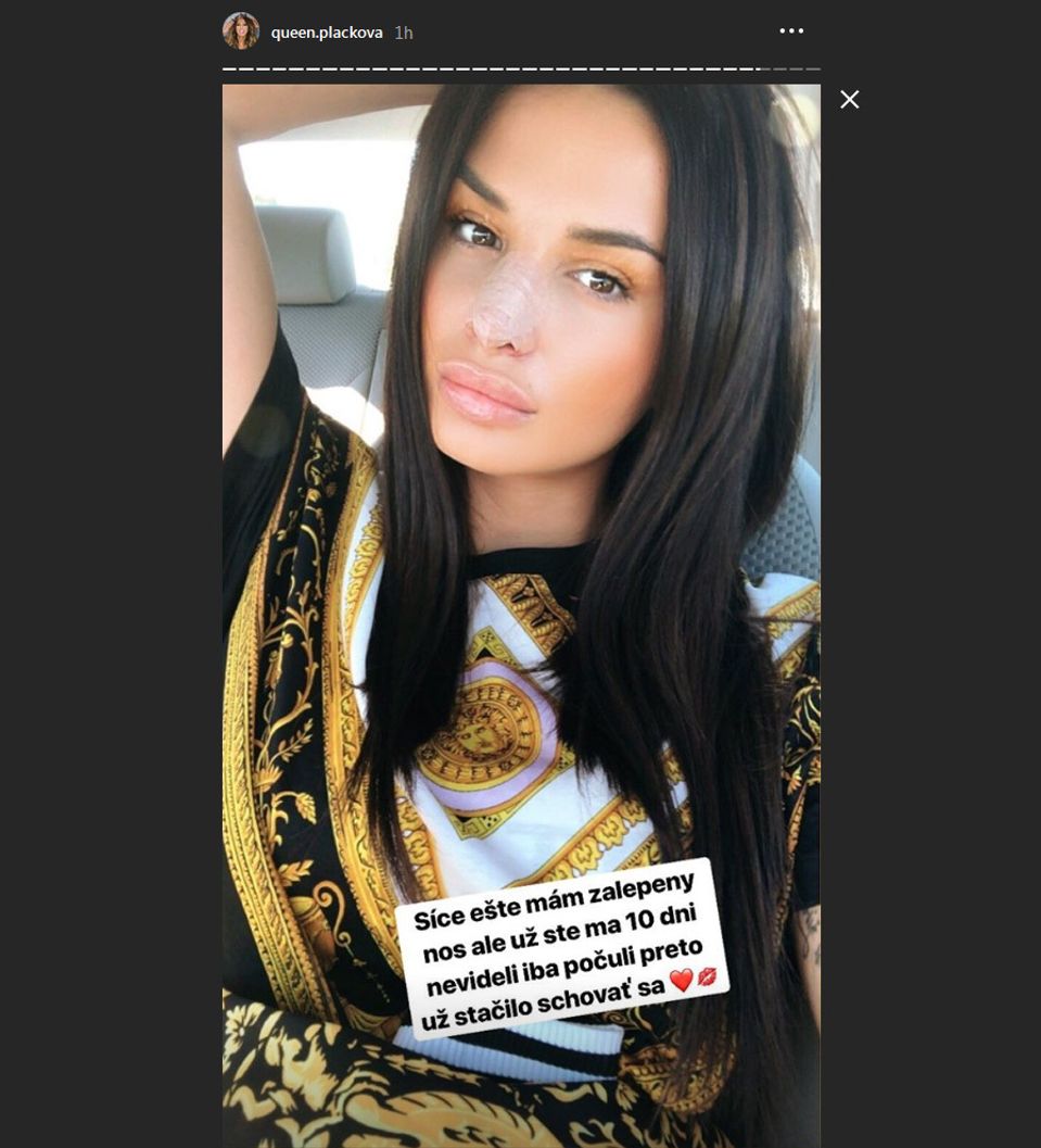 Pred pár minútami ale zverejnila snímku s prelepeným nosom. A síce výsledok nie je úplne viditeľný, ale už teraz sa dá vidieť, že nos bývalej reality hviezdy vyzerá inak a fakt jej to pristane.