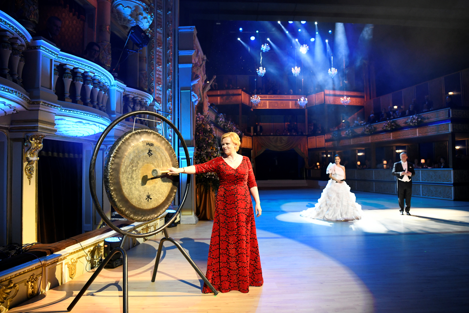 Ples v opere povestným úderom na gong oficiálne otvorila výnimočná žena, špeciálna pedagogička a zakladateľka občianskeho združenia pre ľudí so spina bifida a/alebo hydrocefalus, Terézia Drdulová.