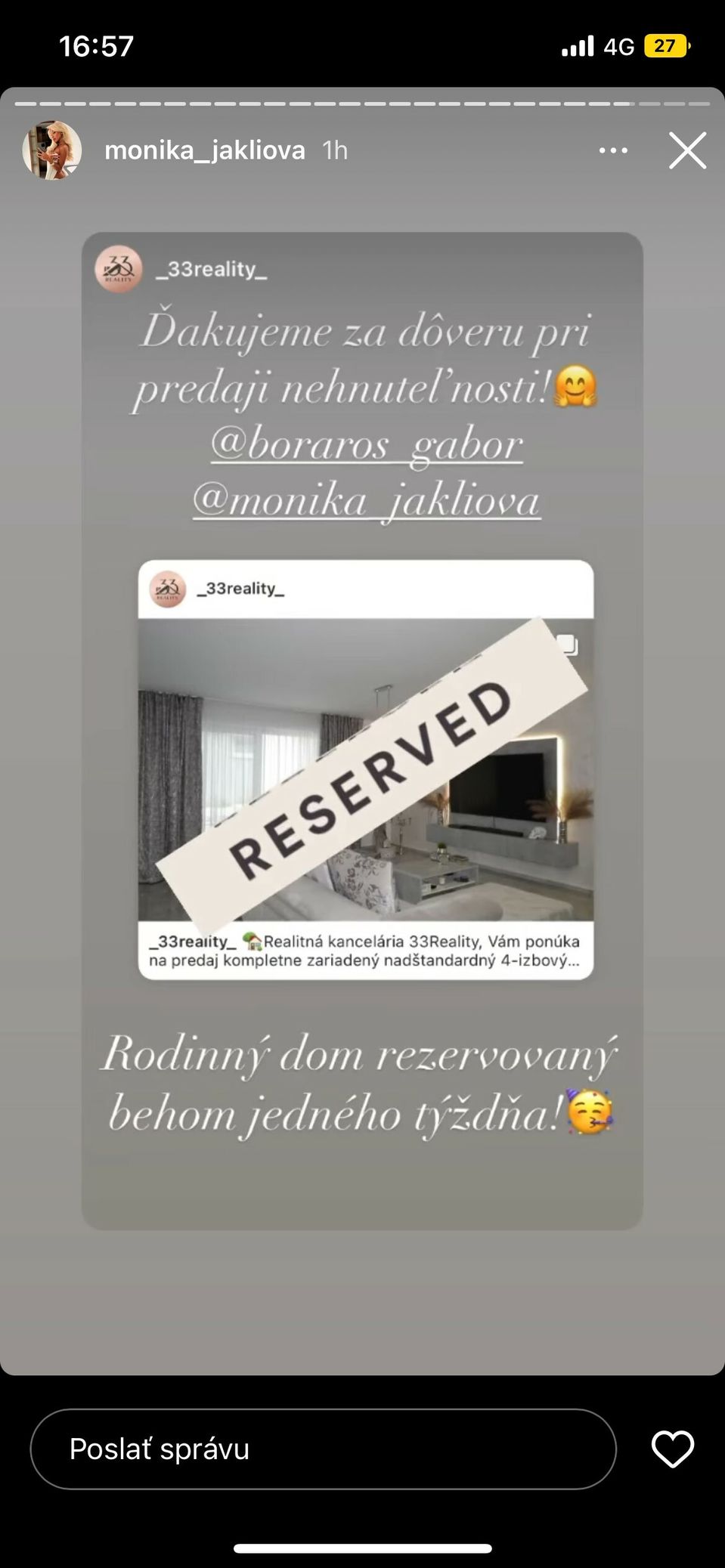 Sexy fitneska pridala na Instagrame príbeh, kde sa pochválila fanúšikom, že jej dom je rezervovaný. Netrvalo dlho a už je aj predaný.