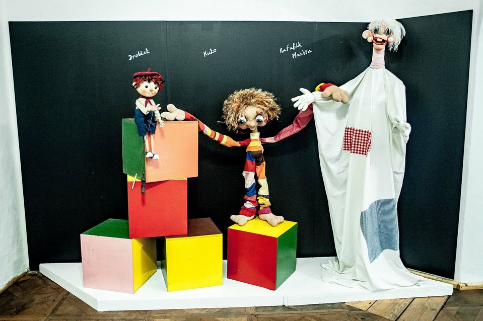 Na snímke nižšie sú bábky z televíznych relácii zľava Drobček (Ma-tel-ko), Kuko (Poďte s nami) a Raťafák Plachta (Slniečko) v expozícii História a súčasnosť slovenského bábkového divadelníctva: