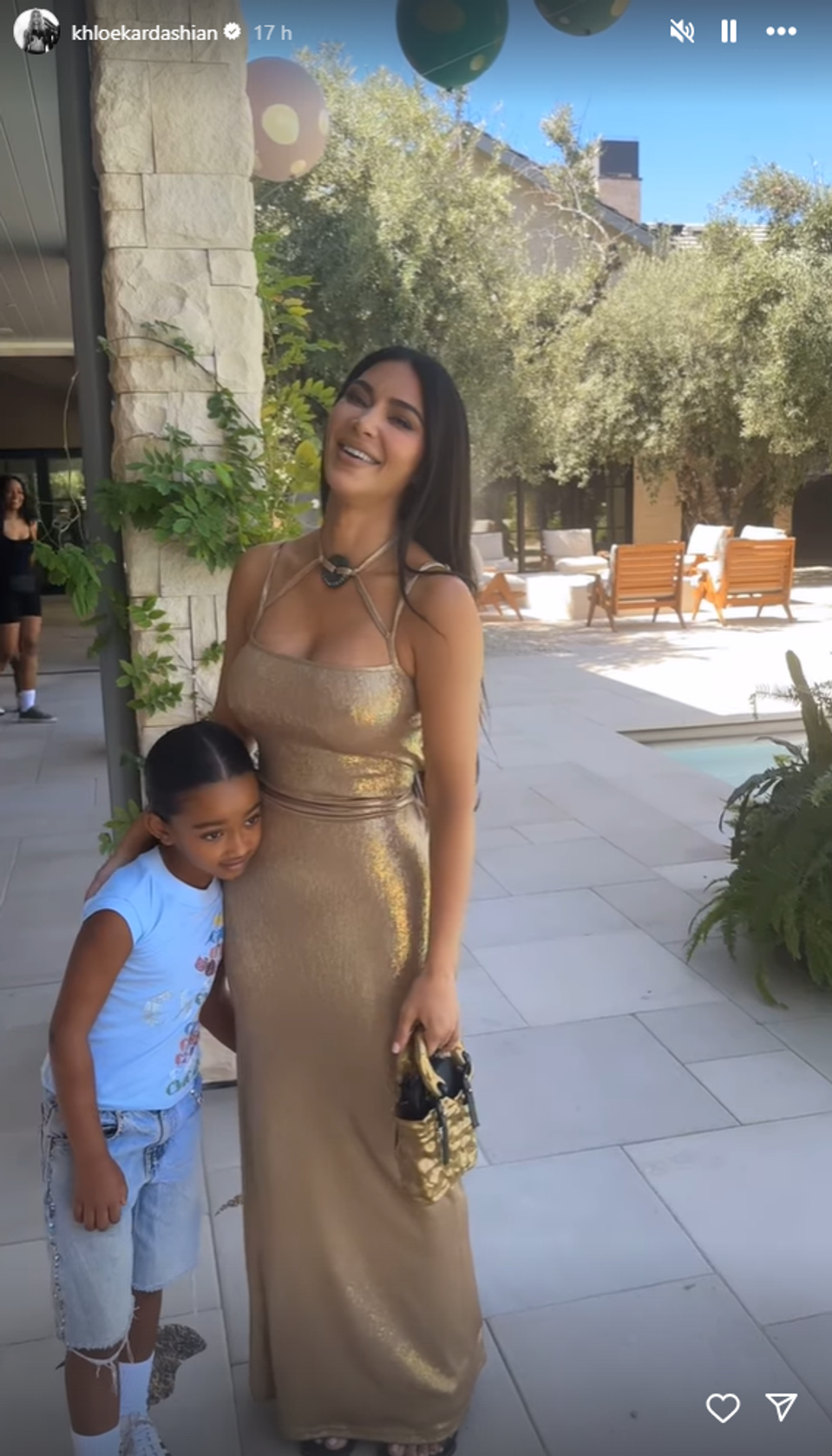 Pozvánku dostali všetci rodinní príslušníci s deťmi a keďže je to početná rodina, tak bolo o zábavu postarané. Oslavu si nenechala ujsť ani Kim, ktorá prišla v dlhých obtiahnutých zlatých šatách, s malou kabelkou a v sandáloch na opätku.